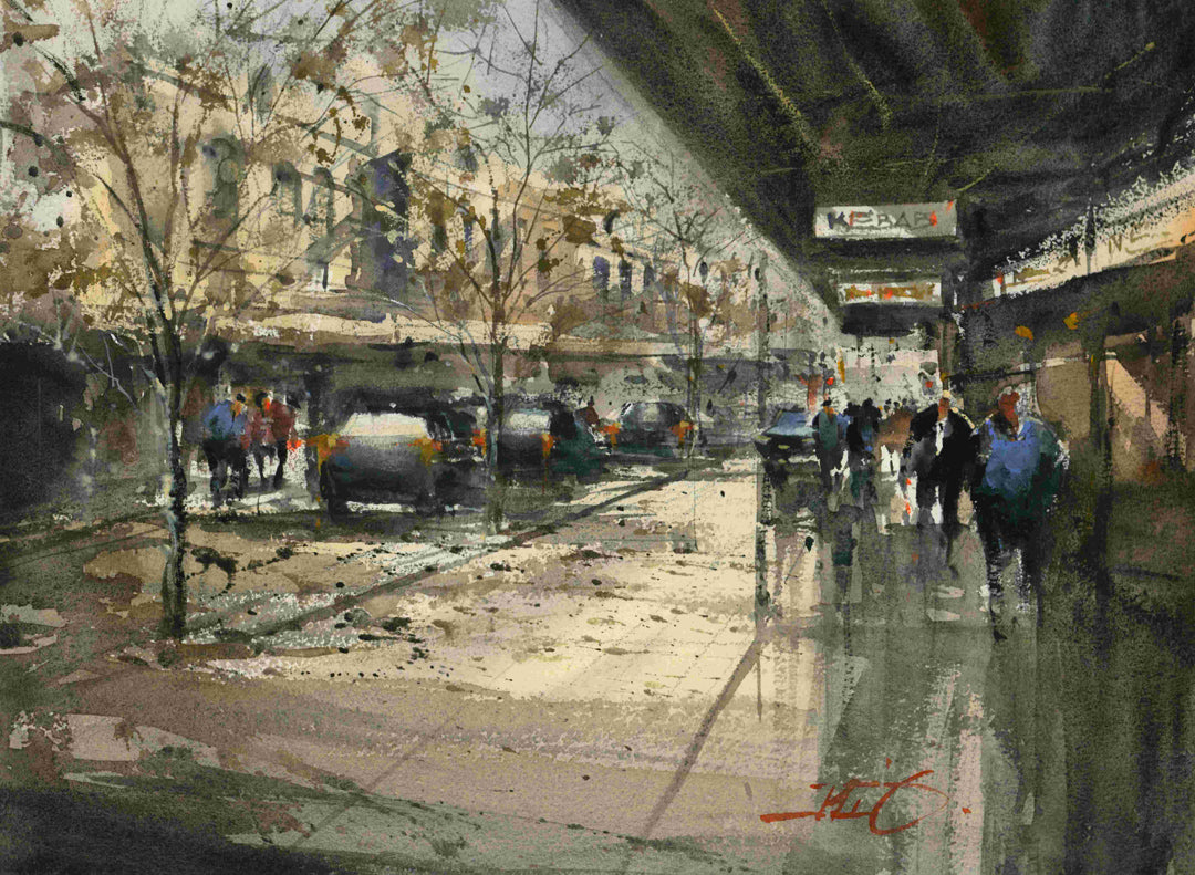 After the Rain Cuba Mall - original watercolour by Kit Ong