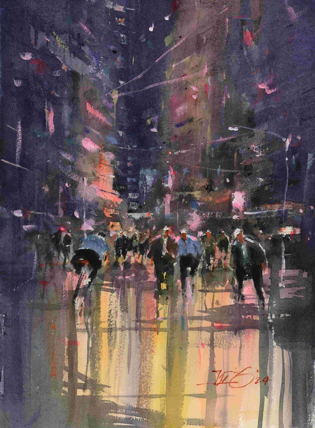 Nightlife Lights & Vibes - original watercolour by Kit Ong